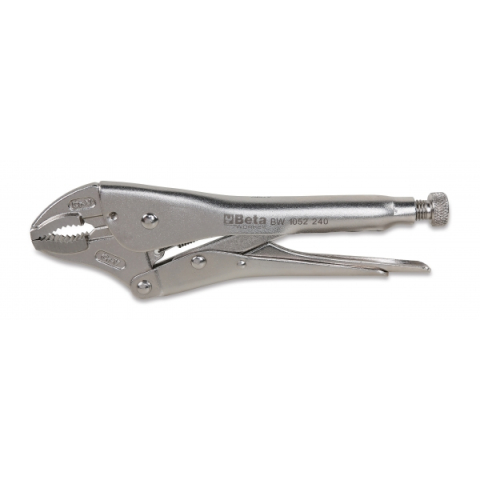 Alicate de pressão, é indicado para segurar e pressionar peças e superfícies, com mordentes côncavos e alavanca junto ao cabo.